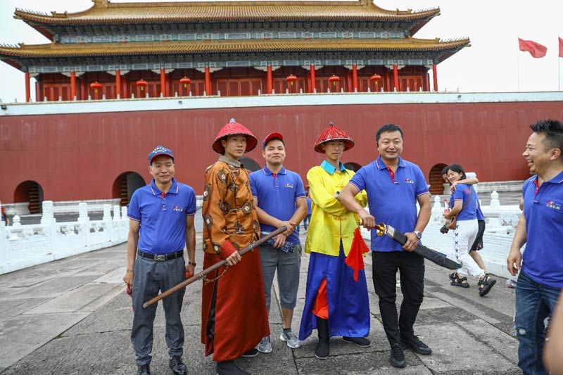 這一次,我們選擇了明清宮苑和秦王宮,明清宮苑始建于1998年,2006年建成,是按照北京故宮1:1比例修建的,據(jù)說修建時總計炸掉了13個小山峰,是橫店影視城造城運動的登峰造極之作,站在這里我們能切身感受到了多個歷史時期燕京的官府民居、街市店鋪和宮殿風(fēng)貌。